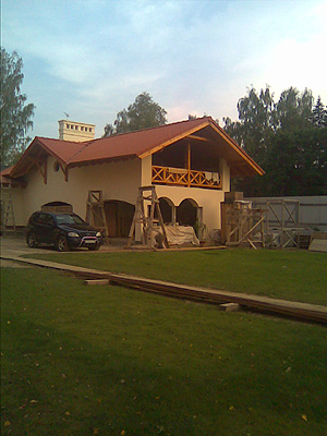 М.О., село "Красное", клубный поселок "Березовый лес"Дом 531 м2, дом для персонала 170 м2, сауна, бассейн 5х10 с аэро-гидромассажом и декоративным водопадом, централизованное водоснабжение. Год постройки - 2009-2010. Архитектурное решение: Богатов Е.Б., Моисеев А.В. Дизайн проект: Богатов Е.Б. Ген. Подрядчик: "Компания Лотос". Кровля: черепица "Braas". Отопительная система: "РУСКЛИМАТ" г. Москва. Котельное оборудование: "De Dietrich". Оборудование для бассейна: ООО "Аква-Техника", ООО "Аквамастер" г. Москва Пуско-наладочные работы систем бассейна и систем отопления: ООО "Аква-Техника"