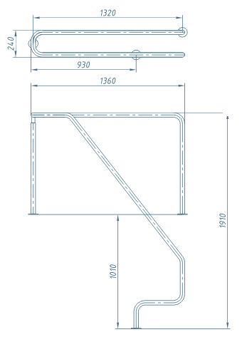 Диаметр сгибаемых труб 40 мм, радиус загиба 80 мм, обработка поверхности - зеркало. Длина изделия ограничивается только здравым смыслом заказчика.
